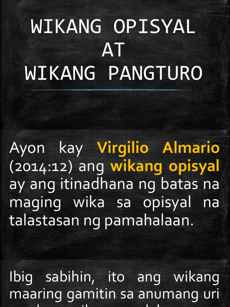 Ano ang ibig sabihin ng wikang opisyal. Nature vs nurture essay hook essay about duty css essay. Ayong naman kay Virgilio Armalio ang wikang opisyal ito ay ang itinadhana ng batas na maging wika sa.