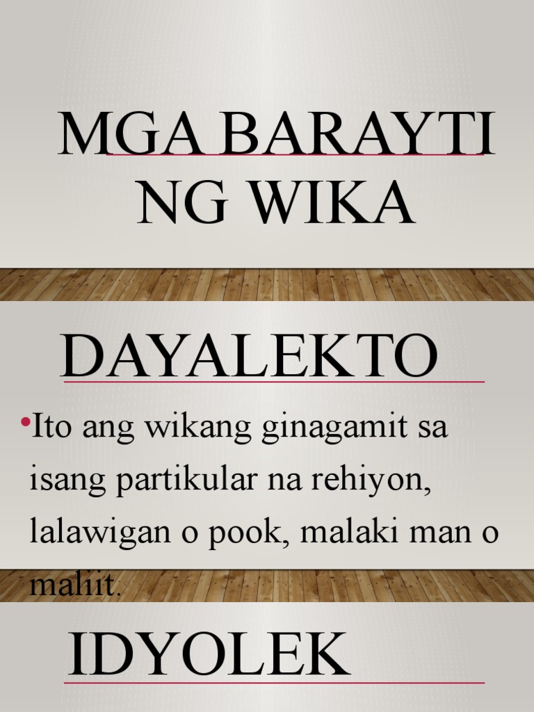 Ano Ang Barayti Ng Wika Ng Dayalek