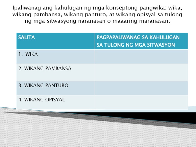 Kahulugan Ng Wikang Panturo Ano Ang Wikang Panturo